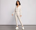 Keep it casual in a jumpsuit that is soft to the touch! The must-have jumpsuit features a plunging surplice neckline. an adjustable drawstring waist. side pockets and straight leg pants. The jumpsuit is composed of a ribbed cashmere-like fabric that offers a relaxed fit. Style with sneakers for a low-key affair.
