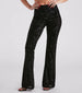 Feeling fancy? You'll fall for these flare pants! They feature a high-rise elasticized waist. a hip-hugging flare-leg silhouette. and a burnout velvet scroll pattern on stretchy lined knit fabric. Style with a long sleeve crop top and heels.