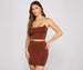 You'll be feeling so fine and fierce with a crop top that brings the luxe! The top features a sleeveless square neckline. rhinestone embellished spaghetti straps. and a cropped hem. Complete look with the matching mini skirt.