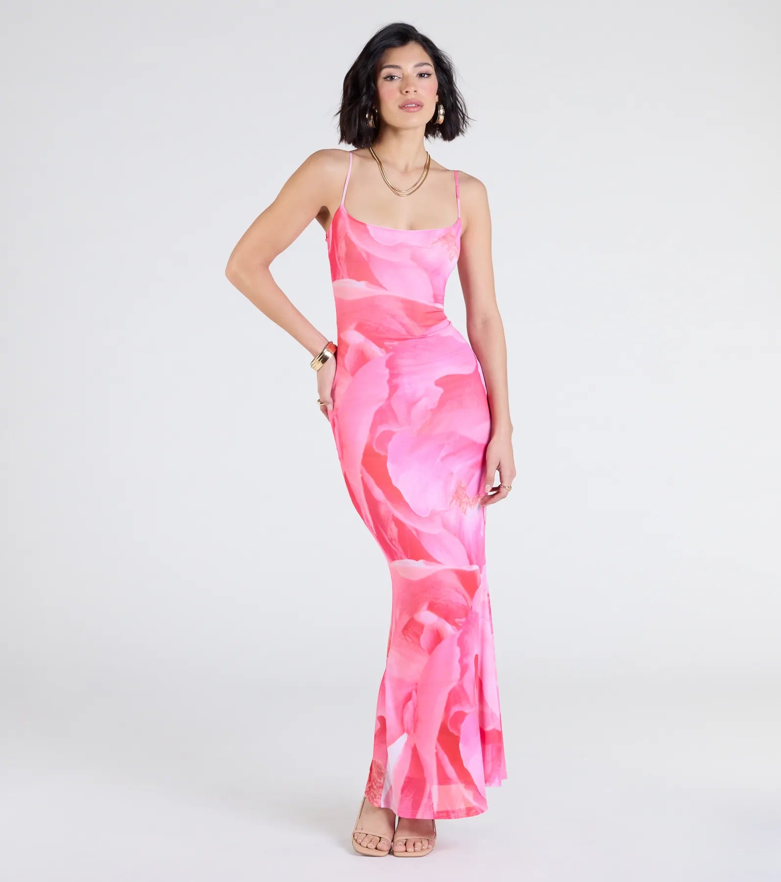 You're flawless and you know it when in this floral maxi dress! With a form-hugging bodice and flowy hem. this dress is a must to pack for vacations.