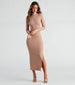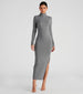 Look and feel good in this rib knit maxi dress perfect for everyday styling! It features long sleeves. a turtleneck. a form-hugging silhouette. and a side-slit accent. Complete the look in mules for a dinner date.