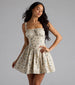 Nothing comes as close to cute as this floral skater dress! Perfect for shower celebrations or afternoon teas. this short dress boasts a pretty corset-inspired bodice and a voluminous hem.