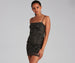 Keep it fierce in a leopard dress that shows off your affinity for style! The mini dress features a leopard print. a sleeveless square neckline. and sleek spaghetti straps. Complete your night-out look with black mules.