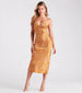 Fierce. fine. and looking flawless in this satin leopard midi dress! It features a sleeveless sweetheart neckline. adjustable spaghetti straps. a knotted bust. and a relaxed slim silhouette. Complete the look with a dainty bracelet and strappy heels for a birthday lunch!