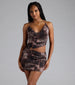 Be fierce and bold on a night out in this abstract mesh mini dress! Designed with a flattering halter cowl neckline that accentuates your curves. an open back for added allure. and a bodycon silhouette with side cutouts to show off your sultry side.