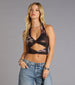 Fierce. fitted. and serving pure confidence—this halter top knows how to keep all eyes on you. With a bold abstract print and daring cutouts. it's the ultimate going-out staple.