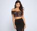 Hey babe. bring the fierce vibes to your style with this chic corset crop top. It features an off-the-shoulder sweetheart neckline. short sleeves. hook and eye front closures. and a cropped. form-hugging fit. The ruched knit fabric has a fab all-over leopard print. Complete the look with a high waist skirt and strappy heels.