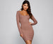 Casual to dressy. this scoop neck mini dress is perfect for creating all sorts of stylish fits! Featuring long sleeves. a bodycon silhouette. and a slight low-back neckline on ribbed knit fabric. Complete the look in a trendy shacket and booties.