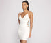 Bring the shine in this sexy mini dress that brings the glitz and glamour to your next date night. The dress features a plunging V-neckline with padded cups that offer support. sleek corded straps. and sexy waist cutouts adorned with rhinestone embellished bar straps. Complete your glowing look with rhinestone earrings and sleek stilettos to amp up your outfit.
