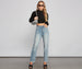 Make a trendy first impression with jeans that slay! The jeans feature a high-rise waist. a single button with hidden zipper closure. a traditional five-pocket with belt loop design. heavy destruction. relaxed boyfriend leg. and a frayed hem. Complete look with a bodysuit and mules.