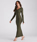 Cute and stylish. this maxi dress will be your first pick for looking good always! It features fitted long sleeves. a v-neckline with button front closures. a bodycon silhouette. and is composed of stretchy rib-knit fabric. Style with booties to complete the look!