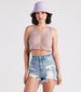 You won't have to fish for compliments in this fishnet tank top...they'll come naturally from everyone who sees you! Flaunt your edgy style featuring a sleeveless crew neck. a cropped hem. and all-over rhinestone embellishments on sheer fishnet fabric. Complete the look in pasties and denim shorts for a festival or concert!