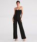 This crepe jumpsuit is absolute chic perfection! It features a strapless corset bodice with flexible boning providing a structured look and a trendy wide-leg silhouette on stretchy crepe fabric. Style with simple block heels for a rehearsal dinner or date night!