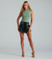 You'll be feeling and looking flawless in this faux leather skort! It features a flattering high-rise waist. a front skirt overlay with grommet stud trim. a form-hugging fit. and a short lining. The smooth faux leather fabric has no stretch. Complete the look in a basic bodysuit for an edgy concert outfit or date night!
