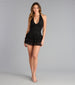 Playful. flirty. and just a little glam. This glitter lace halter romper turns heads with its plunging neckline and tiered ruffle shorts that move with every step. It's your one-and-done outfit for a night out. a party. or any excuse to dance.