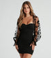 It must have been fate to bring you and this crepe mini dress together! Bring the flirtatious vibes in this sultry dress featuring sheer. floral velvet burnout peasant sleeves and a sweetheart neckline. a lightly padded bust with underwire. and a bodycon silhouette. Complete your dressy look in doorknocker earrings and heels.