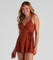 Add a little flirtatious flair to your everyday look with this adorable romper! It features a sleeveless. surplice V-neckline with adjustable spaghetti straps. and a fit and flare silhouette with flowy shorts and a faux wrap-front skirt. Style this romper with a denim jacket and sandals.