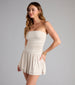 Show off a flirty allure in this adorable mini tube dress designed with a strapless straight neckline. drop waist. and a short. tiered. A-line silhouette. Style with sneakers for a cute and casual 'fit.