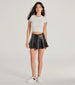Add a little edgy flirty factor with this faux leather mini skort for going out! This chic skort features a high-rise waist for a flattering fit. a pleated A-line silhouette that adds movement to your look. and a mini-length hem for a touch of sass. Complete the look with a bodysuit and heels for a dinner date!
