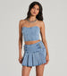 Shop Matching Bottoms: Flirty Duo High-Rise Buckle Pleated Denim Mini Skirt