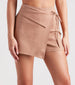 Catch all the flirty eyes when you're seen in this ponte skort perfect for lunch with friends or date nights! Featuring a high-rise waist. faux wrap overlay with a side tie. and a short hem. Complete the look in a sleek corset top.