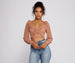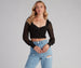 Add some flirty flair to your everyday look in this chic crop top! It features a V neck and back. tiered ruffle detailing in an X design on the front. long sheer sleeves with smocked hems. and a cropped. form-hugging fit. Pair this lightweight mesh top with high-rise mom jeans and heeled mules.