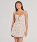 The flirty romantic allure of this floral mini dress will take you from brunch and garden party soirees! This mini dress boasts a cinched waist with a corset bodice and head-turning lace-up back design while the a-line silhouette flatters your figure. Pair with ballet flats.