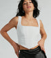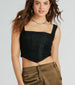 This simply stunning ruched lace corset top will bring the flirty vibes to your date night outfit. The top's sheer floral lace fabric gives off a soft feminine look. and the full knit lining provides coverage. The sleeveless square neckline shapes the front with tank shoulder straps. and the flexible boning inserts provide structure. The front of the corset top has ruched detailing to accentuate your figure. leading to the back zipper closure. The fitted. angled. and cropped hem will give you a chic silhouette. Style this pretty corset top with a mini skirt and mules.