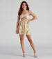 Bring a burst of florals with a short dress that will have you brunch ready! The dress features a sleeveless sweetheart neckline. adjustable spaghetti straps. and a cutout at the midriff. The smocked waist leads to a flowy skater silhouette with tiered ruffles. The dress is composed of a lined chiffon fabric that offers a relaxed fit with minimal stretch. Complete look with wedges.Â