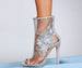 Show off your passion for florals with chic stiletto booties that bring the charm! The booties feature an around the ankle fit with a sheer body. a floral applique pattern. a peep toe. and a stiletto heel. The booties are composed of a combination of faux suede and PVC material. Complete look with a black dress.