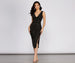 Show some class in our Florence! She has a v neckline. tank straps. and a form fit. Her hem hits below the knee and has a small slit at the side. She is composed of a knit material with a mesh overlay that is adorned with reflective heat stones. She offers moderate stretch. and a full lining. Pair with your favoirte black heels to complete the look!