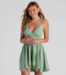 Flutter away in a twirl-worthy skater dress! The dress features a sleeveless wrap V-neckline. adjustable spaghetti straps. and a tiered skater silhouette. The dress is composed of a lined chiffon fabric that offers a relaxed fit with a minimal stretch. Complete look with mules and dainty rings.