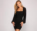 Keep your night-out look forever chic with this gorgeous mesh bodycon dress. It features a trendy square neckline. long sheer bishop sleeves. all-over ruching. and a mini-length. form-fitting silhouette that will hug your curves. Style this dress with rhinestone statement earrings and new heels.