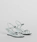These forever fab chrome wedge heels are the ultimate shoe for festival season! Designed with a sleek faux leather material with a reflective chrome sheen. they feature an almond toe with thin crisscross straps. a short curved wedge heel. and an adjustable ankle strap with buckle closure. The lightly cushioned insole helps keep you comfortable all day. Complete the look with the matching shoulder bag.
