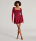 Stay forever sweet in this skater dress featuring a sleek square neckline and ruching that flatters your figure. Pair with heels.