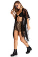 Have some fun in this cover up. It features a sheer lace. open front. short kimono style sleeves. and fringe at the hemline. Cover up is composed of crochet knit fabric that offers a relaxed fit with a moderate stretch.