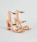 The future is looking so sleek in these metallic block heels! They feature an almond toe. a trio of thin straps. and a closed ankle with a back zipper closure. Style with an embellished box clutch to complete the look!