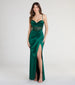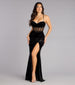 The sultry Gabbie formal dress is destined to be your go-to for unforgettable evenings! Designed with a rhinestone embellished sheer corset bodice for glamour vibes and a striking high front slit for effortless movement.