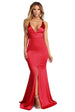 Reign the night like the queen you are in our elegant Gabby dress! She features a bold red color. a sleeveless bodice. a V neckline. a double row of rhinestone embellished cross straps that adorn her open back design and a high slit. Dress is composed of a lined stretchy satin fabric that offers a form hugging fit with a moderate stretch.