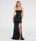 You'll shine in head-to-toe sequins on the Gabrielle formal dress boasting a lace-up back that stuns and a mermaid silhouette with a sultry high slit perfect for showing off your heels!