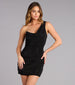 All shimmer. all sophistication—the Gabrielle mini dress is made to command attention. Crafted from rhinestone knit fabric with a draped cowl neckline and sculpted wrap-style mini hem. it's the perfect mix of modern glamour and timeless polish.