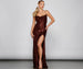 Shine like the queen you are in a formal dress that will be the major highlight of the evening! The dress features sparkling sequins throughout. a sleeveless cowl neckline. bungee spaghetti straps that cross at the back. a high side slit. and an A-line silhouette. The dress is composed of a lined mesh fabric that offers a form-hugging fit with minimal stretch. Complete look with rhinestone heels and a rhinestone clutch.