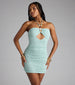 Your next getaway calls for this crochet mini dress! This dress has a stunning halter bead neckline that adds a touch of boho. a cutout accent. and a flattering bodycon silhouette.