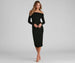 Stun them all with a formal bodycon that makes a captivating impression! Giada features an off-the-shoulder neckline. long sleeves. a ruched body. and a midi-length silhouette. The dress is composed of a lined lurex fabric that offers a form hugging fit with a moderate stretch. Complete look with block heels and a rhinestone anklet.Â