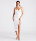 If you're looking to sparkle this glitzy sequin midi dress is the perfect shimmery option! The short dress features a sleeveless V-neckline. bungee spaghetti straps. a form-hugging silhouette. and a front-slit accent. Complete the look with a glam hair accessory for a flawless updo!