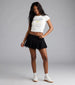 Serve all the girly chic vibes in this cute mini skort designed with a drop waist. pleating. and a peeking lace trim.