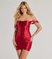 A glamourous glitter satin mini dress boasting an off-the-shoulder neckline that leads to the pleated waist and bodycon silhouette to give you an hourglass appearance. Complete the look with earrings.