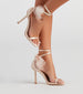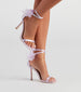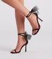 Bring the glam girl vibes to your chic outfit with these satin stiletto heels! They feature an open square-shaped toe with a thin strap. a thin adjustable ankle strap. a sheer organza bow accent. and a sleek stiletto heel. Style with rhinestone statement earrings.