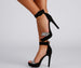 Elevate your glam night-out look in these nubuck stiletto heels! They feature an almond toe. rhinestone toe strap. and a buckle ankle on a platform sole. Complete your look with sparkly earrings.