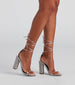 Create a magically glam look in a flash with these block heels featuring an almond toe. PVC toe strap. lace-up ankle design. rhinestone embellishments. and a faux leather footbed. Complete the look with jewelry.